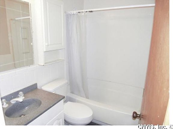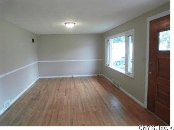 Spacious home on corner lot in N. Syracuse offering 3 bedrooms, 2 bathrooms, large living space with a family room offering skylights and vaulted ceiling, dining area, full basement with additional room for storage, deck, and fenced-in back yard. This home does not offer any kitchen appliances.