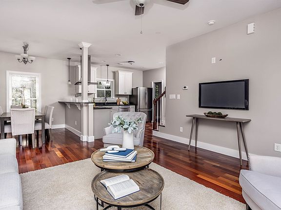 Really unique home walkable to all things downtown Raleigh, less than a block away from Hunter Elementary, and a short walk to Transfer Co. Food Hall. 4-bedrooms, two with en suite bathrooms; one on the main floor and one on the third floor. Hardwoods, granite, quartz, stainless steel appliances, gas range, walk-in pantry, double stacked covered porches, one car garage, and a beautiful private landscaped yard with plenty of room for the whole crew.