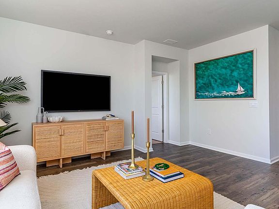 Our Cali plan is the perfect one level home with a beautiful, open concept living area for entertaining. The kitchen features granite countertops, oversized island, 36" cabinets, walk-in pantry, and stainless appliances. The large owner's suite is tucked away at the back of the home, separated from the other bedrooms, with double vanity and 5' walk-in shower in the private master bath. Three additional bedrooms all on one floor.  Enjoy the coastal air on the spacious covered rear porch!   This is America's Smart Home! Control the thermostat, front door light and lock, and video doorbell from your smartphone or with voice commands to Alexa.  *Photos are of a similar Cali home. (Home and community information, including pricing, included features, terms, availability and amenities, are subject to change prior to sale at any time without notice or obligation. Square footages are approximate. Pictures, photographs, colors, features, and sizes are for illustration purposes only and will vary from the homes as built. Equal housing opportunity builder.)