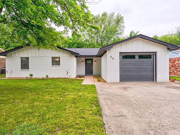 Charming remodel located on a quiet cul-de-sac street in the Hodge addition just minutes from downtown El Reno. This fully renovated 3-bed, 2-bath home boasts modern upgrades throughout. Step into the bright, open living space with wood-look vinyl floors. The kitchen features a dining area with bay windows, Quartz countertops with undermount sink, timeless subway tile backsplash, and all new stainless steel appliances. The master bedroom offers its own updated private bath with walk-in shower. Updated hall bathroom with tiled shower tub combo, lighting and fixtures. All bedrooms have new carpets and ceiling fans. One-car garage with epoxy floors and garage door opener/keypad. New roof (2024), new furnace, and newer hot water tank. Fresh interior and exterior paint, and new landscaping. Enjoy the large fully fenced backyard offering great privacy and mature trees perfect for outdoor entertaining and play space for kids. This home is truly a move-in ready home! Schedule your tour today!
