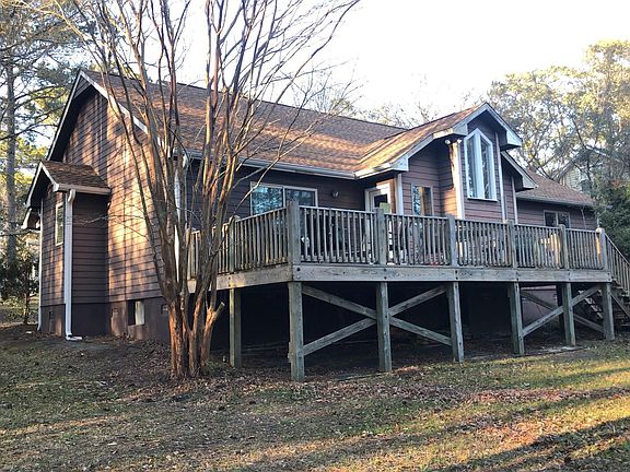 If you've always dreamed of a mountain home or a beach house, here, you will feel as if you have the best of both worlds. This charming home was built on a very private lot, tucked beneath lots of beautiful trees giving you the mountain atmosphere but just 14 miles from the gorgeous sandy beaches of Emerald Isle. Also, historical downtown Swansboro, a quaint waterfront town is just 6 miles away where you can enjoy fine dining and shopping! There are so many wonderful aspects to this home, Hickory Bluff subdivision is a very upscale GATED Community, unlike most neighborhoods around the coast, this one is very wooded which provides a peacefulness that can't be beat. It's a small neighborhood with plenty of privacy, unlike the huge neighborhoods developed in open fields. Another treasure to be found here is the community boat dock and kayak launch just a few minutes walk from the house. There are boat slips for rent, great fishing location on Queens creek or just sit on the bench's provided on the dock and unwind after a long day. The master suite occupies one side of the house allowing privacy. Also, there is a sliding glass door off the master bedroom that opens to the large deck overlooking the huge wooded backyard and marsh land that backs up to the creek. A flex room with lots of large windows is located on the front of the house and could be used as an office, dining room, home gym, or craft room. You decide. The home offers a two car garage and lots of additional parking space in the driveway. Great place for entertaining and family gatherings. New flooring and fresh paint throughout Feel free to contact me via text message at the phone number provided No smoking in home, small house trained dog allowed with pet deposit.
