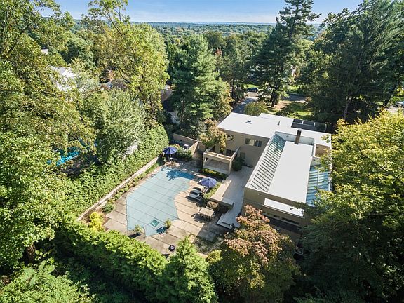 LIGHT, BRIGHT AND AIRY = ARCHITECTURAL DELIGHT. DRAMATIC SPACES GALLERY HALLWAYS, HARDWOOD FLOORS AS INSTALLED, LIVING ROOM SPACE FLOWS INTO DINING ROOM SPACE WITH WALLS OF WINDOWS (OVERLOOKING POOL AND DECKS) OPENS TO FAMILY SPACE WITH NEW MODERN FIREPLACE AND BUILT IN BOOKCASES ~ THE NEWER MODERN EAT-IN KITCHEN FEATURES CUSTOM CABINETRY BY HACKER ~ SKYLIGHTS FLOOD THE LIVING SPACES WITH LIGHT ~FIRST FLOOR MASTER SUITE WITH HARDWOOD FLOORS SLIDING DOOR TO PRIVATE PATIO AND POOL, 2WALK IN CLOSET, AND NEW SPA LIKE MASTER BATH ~ 1ST FLOOR LAUNDRY WITH SKYLIGHT ~ POWDER ROOM, SECOND FLOOR WITH 3 SPACIOUS BEDROOMS WITH HARDWOOD FLOORS, 2 TILED BATHS ONE WITH A SHOWER OVER TUB AND ONE WITH A SHOWER. FINISHED BASEMENT GYM OR PLAYROOM AND STORAGE. MANY UPGRADES~ HEATED INGROUND POOL SURROUNDED BY DECKS, SITS BACK 100FT FROM THE STREET FOR LOTS OF PRIVACY