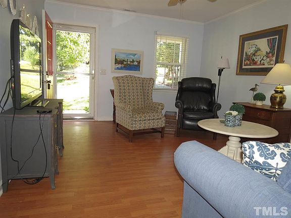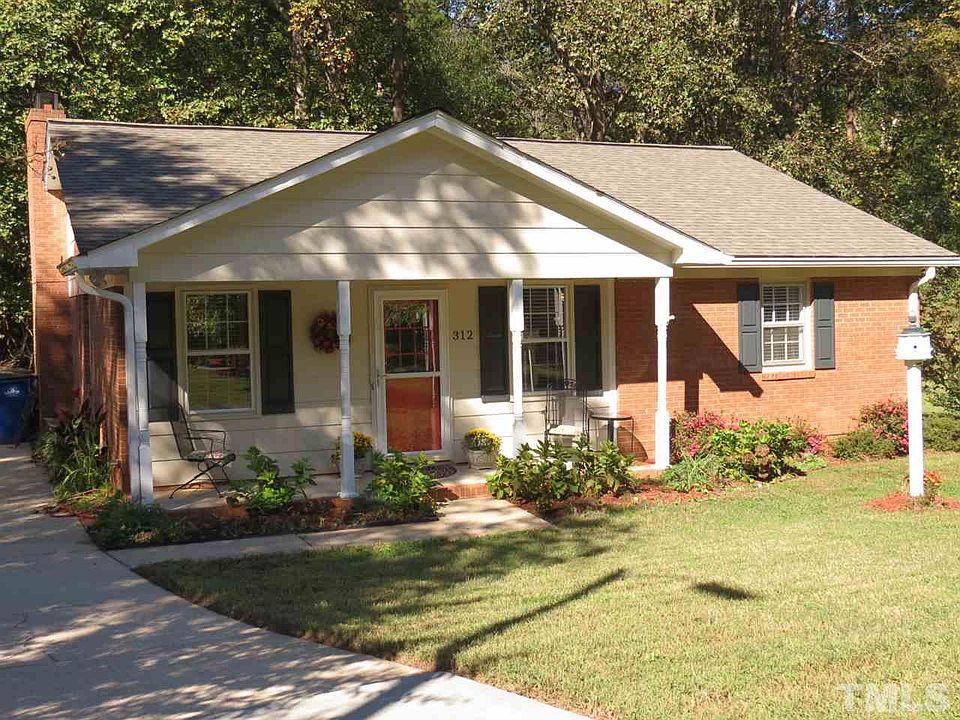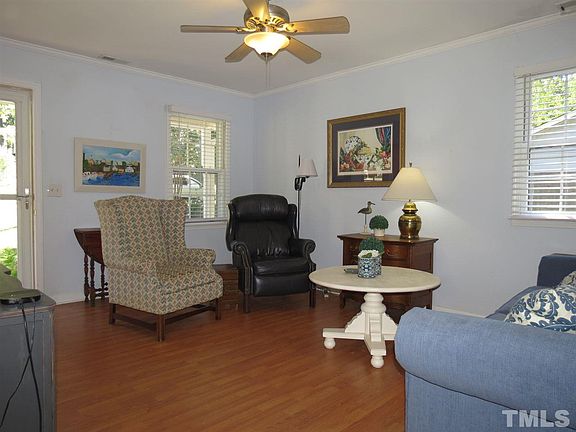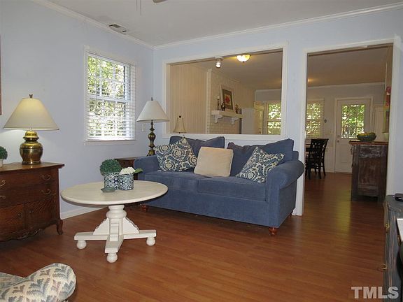 Adorable Cottage home in a great North Raleigh location! New kitchen cabinets and counters, laminate flooring in living room, dining, and kitchen. Beautiful painted fireplace in dining/sitting area. Smooth ceilings in living area. New light fixture in dining area. Updated baths New roof 2017 Owner added a great deck and small garden space. Home is nicely landscaped and backs up to land owned by the city and pro vides privacy. Located near Whole Foods, restaurants shopping.