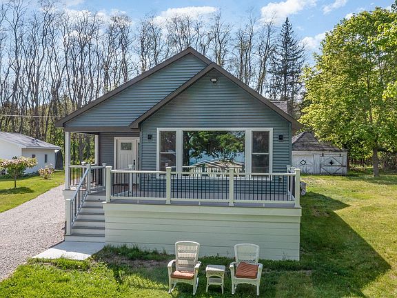 Welcome Home to this completely remodeled house located directly across from Lake Huron on a dead end street and within walking distance to downtown Harrisville, parks and boat launch! Sit on your elevated front composite deck and enjoy the views and breeze of Lake Huron. The interior is all brand new from the electrical to the plumbing, luxury vinyl plank flooring, kitchen, three full bathrooms, paint, light fixtures, furnace and more. Large picture window in the open concept living area, walk in closets, central AC, wired for a generator, mud room in the back of the house with a stand up washer/dryer hook up. New vinyl siding and roof. City water and sewer. With the easy addition of a door or two, you could separate off the spaces to have a private mother in law suite or income producing AirBnB!