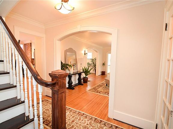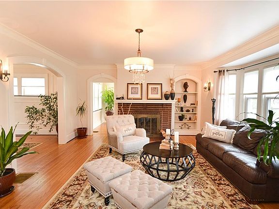 PERFECTION! This gracious home has been tastefully updated and captures the essence of its era. Each room has been improved from the rich hardwood floors to the unblemished plaster walls. The expansive living room with wood burning fireplace accesses the sun room, ideal for an in-home office or private space to enjoy your morning coffee. The formal dining room is accented with elegant picture molding. The eat-in kitchen is a cooks dream with everything you need and all you want; stainless appliances - refrigerator with integrated Keurig, granite countertops, farm sink, wine fridge and soft close cabinetry with ambient lighting. The owners suite with fireplace will take your breathe away! The en-suite is simply elegant with a luxurious soaking tub. 2 additional light-filled bedrooms, full bath with custom cabinetry and laundry room complete the 2nd floor. The 3rd floor has 2 additional finished rooms perfect for a dressing room and office. Graceful landscape mimics the curves of the brick walkway and rear yard is the place to be on warm nights! Screened in she-shed and fire pit awaits. Of note-all new windows, 2018, tear off roof 2019