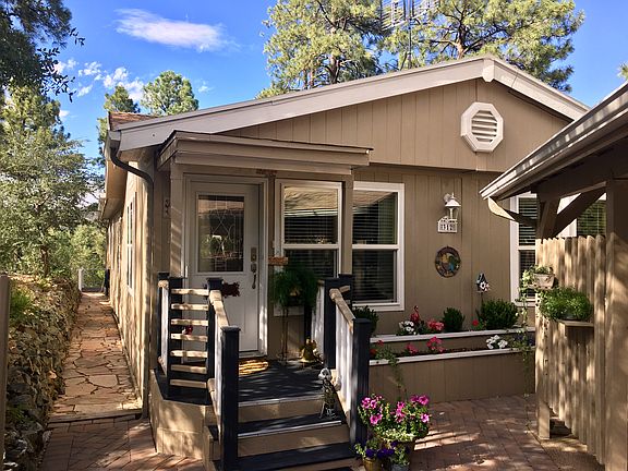 This is a 55+ community. Land is leased. One title holder must be 55 or older. Amenities include pool, spa, clubhouse, tennis court, billiard room, workout room, community kitchen and meeting room, 2 lakes, dog park, miles of hiking trails and nature trails nearby. Pine Lakes is an official Firewise community. Land lease at $893/mo.