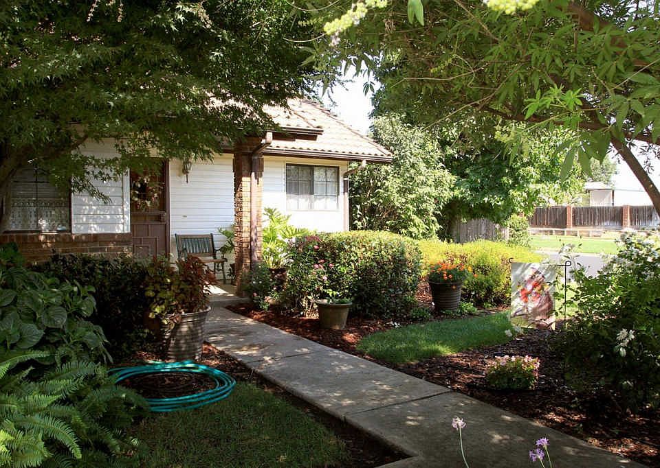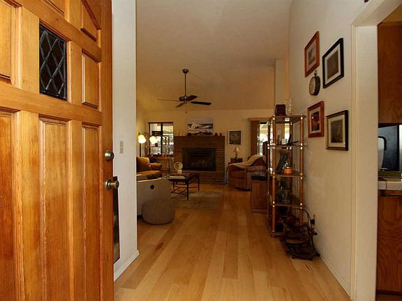 Clovis home on a corner lot, with a great floor plan. Featuring beautiful hard wood manufactured flooring. A bright kitchen, with corner windows overlooking the nicely landscaped front yard. There's a kitchen nook with ledges to display plants, flowers, or whatever you like; with views to the backyard. Updated gas fireplace insert, newer oven and microwave. HVAC has been replaced. Indoor laundry. Lovely remodeled Master Bathroom, with granite counter, dual sinks, a sky light, and tile shower with glass. Vaulted ceilings. Appealing outdoor siding has been added. Tile Roof. Outdoor pad with hookup for a spa. Park like private backyard, with mature landscaping, trees, (citrus too), ample space on both sides of home, and pathway to walk from backyard to front. Potential RV parking. Well maintained home. No neighbors to the left! Large green grassy area nearby. Located within the Clovis Unified School District. Come see this fabulous home today.