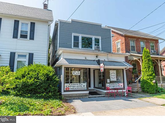 Fantastic opportunity to own a mixed use property in Quakertown Borough. Downstairs we have a long time tenant that runs a chiropractic business as well as a karate dojo. Tenant pays $1,250 per month. Five rooms occupy the downstairs as well as two bathrooms. Also on the first level is a huge 2-story garage around the rear of the property that can be rented out for additional income. Upstairs we have a two bedroom one bathroom residential apartment. Upstairs tenant pays $1,000 per month. Tenants responsible for all utilities. Improvements include: New Electric ? lights, wires, breaker boxes, 3 ? meter box. New boilers separate from residential and commercial unit. Converted oil to gas heat. Central air installed on first floor commercial unit. Meeting room conversion from storage unit with heat pump installed. New wall for garage entrance. New bathrooms for all units. New siding, new windows, new water heater for 2nd floor unit, freshly painted exterior. This is an absolute bargain and a great way to own an affordable investment property. Make an appointment today!!! Previous buyers financing fell through
