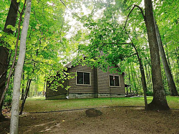 Beautiful chalet 2 minutes from Higgins Lake with new patio and landscaping. Has a loft which makes for a great room for overnight guests. Very quiet neighborhood with no homes on either side or behind with stunning wooded scenery all around. House has consumers energy gas line to the building. Just needs to be hooked up. Home currently has a pending offer.