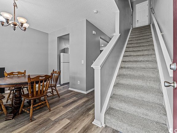 Well-maintained two bedroom two and half bath townhome-style condo now available in Kiskadee Parke at Wild Wing Plantation. The spacious dining room, kitchen with ample cabinet and counter space with an updated backsplash, comfortable living room and half bath are all found on the first level. This main living area also features luxury vinyl plank flooring throughout. Upstairs are both bedrooms and full baths as well as the laundry room. Additionally, there is a private screened porch with recently updated epoxy flooring. This community has wonderful amenities including a large outdoor pool, tennis court, volleyball court, gym and clubhouse. This property is conveniently located near shopping, schools, and medical facilities and just a short drive to the beach and all of its attractions.  Peaceful townhome style with a view to the lake from your screen porch and upstairs bedroom. Roomy 2 bedroom 2 1/2 bath off the mainroad. Both bedrooms with their own bathrooms are upstairs along with laundry area, washer dryer included. Downstairs has threeseparate areas for relaxation, either dining area/study, living room, or porch, with a full kitchen in the middle