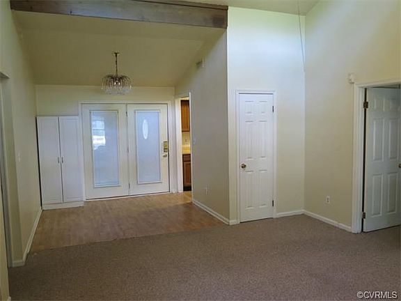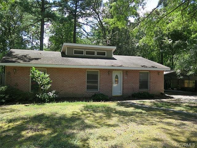 This Petersburg 3-4 bedroom home is very close to 95, Fort Lee, and Colonial Heights, and also comes with 2 full bath rooms! There was an addition added on which has been used as a fourth bedroom since it does come with a closet, built in book shelf and access to the back yard! The home also comes with a large carport for 2 cars, which has a door to the kitchen so you can stay dry on rainy days! And a wood fenced in rear yard with a slide and swing set in it (both are "As Is")! You enter the home from the front door into the living room, leading into the dining area. As you look into the living room from the dining area you will see the 3 windows in the vaulted ceiling which brings in the natural light into the dining area. The Galley style kitchen (with refrigerator) is on the right of the Dining area. The addition is through a door behind the dining area, so it can be used for many different things. The Master Bedroom is off the right side of the living room, which comes with a walk in closet and its own full bathroom! Between bedrooms 2 and 3 on the left of the living room is the other full bathroom. Please take a look at the photos which have descriptions of each room.