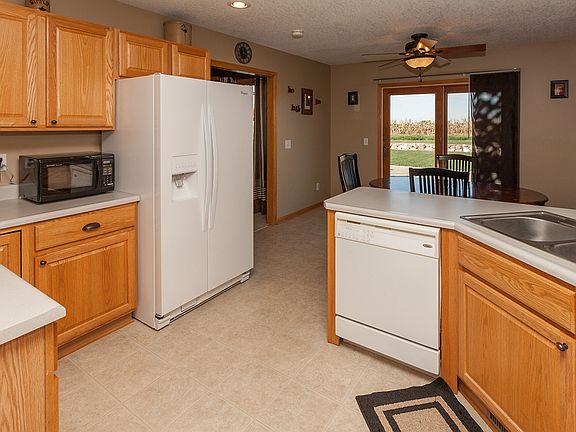 Enjoy the perks of small town living with this stunning ranch home! You will love the peaceful views of fields instead of neighbors out the back of the home! A spacious living room w/ a fireplace greets you as you enter the front door. Retreat back to the master suite, which features a private bath w/ large soaking tub & dual vanity. Main level also boasts a beautiful eat in kitchen, dining space, 2 additional bedrooms, & a full bath! The lower level is where you find a 2nd great entertaining space, 4th bedroom, stubbed in future bath, and lots of storage! If more storage is needed, look no further than the garage w/ tall ceilings for overhead storage space. Huge deck off the dining space allows for great outdoor entertaining. Great family neighborhood with walking & bike trails close! Roughly 25 minutes from Altoona & 35 minutes downtown Des Moines! Certified Pre-Owned Home - this home has been pre-inspected and comes with a 13 month HWA Platinum Home Warranty for your peace of mind!