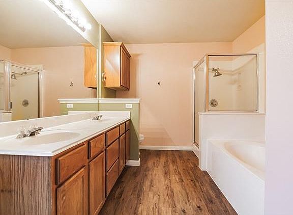 Well-kept 3 bed/2 bath 1-story home. Tons of natural light, recent paint & well-planned layout. Hard-tile entry leads to family room w/recent vinyl-wood plank flooring, w/ceiling fan, fireplace & open to the kitchen--complete w/breakfast bar, breakfast area & bay windows. Kitchen includes gas range, microwave, dishwasher & refrigerator. Master is set apart for privacy--separate shower & garden tub. Enjoy outdoors w/friends&family on the covered patio-fenced yard--great for pets or play & blocks from park!