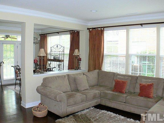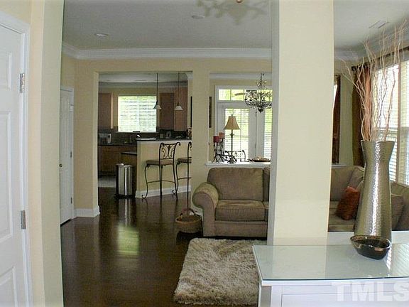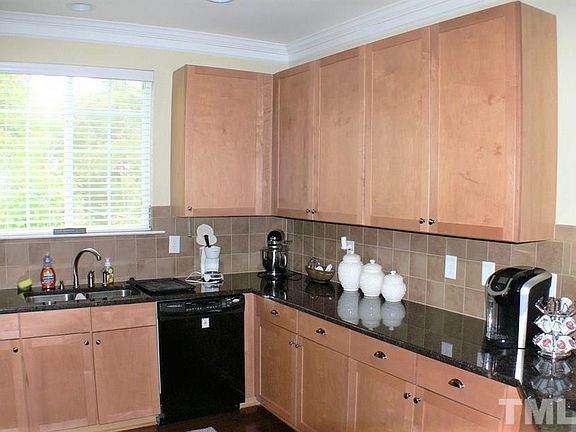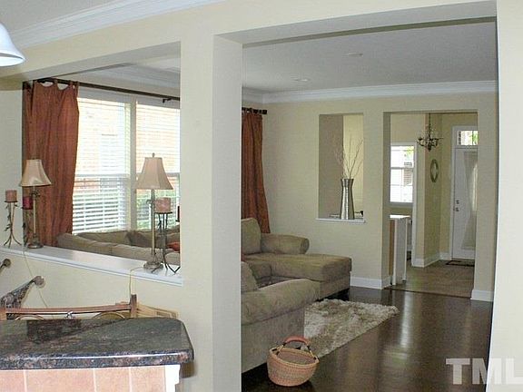 Bright end-unit with upgrades. All brick, front and rear decks, patio, bonus. Granite counters, tile back splash 42" cabinets, huge walk-in-pantry. Hardwoods, new carpet, crown molding. Hunter Douglas 2" blinds thru out, double shower in Master, IR entertainment control. Floored attic. Amberly's amenities: clubhouse, fitness center, classes, gym, pool. Convenient to I540, I40, NC55, RDU, RTP. Discount for 2-yr lease. SORRY - NO PETS