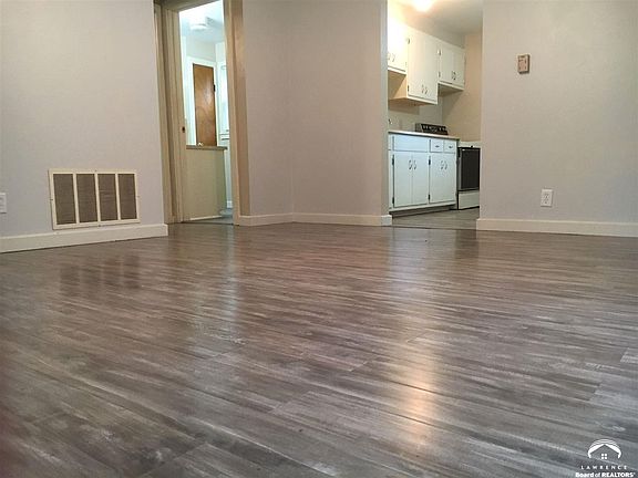 Delightfully refreshed and updated Cottage: new siding, new interior and exterior paint, and new wood-look, high-performance, low-maintenance flooring. Clean, cozy, and ready to call "home," needs only your furnishings to be complete. Small but not tiny. Presentable but not pretentious. Is it "just right" for you? Classic barn-style garage, 20x18, provides ample storage for vehicles, shop, and hobbies, with a 2nd floor to store truckloads of treasure. 6250s.f. of North Lawrence super-soil for your garden.