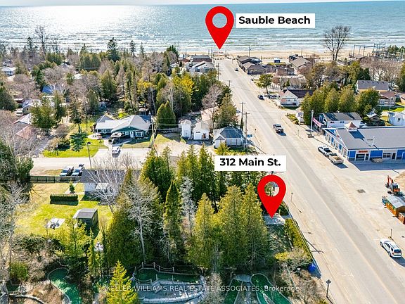 *See 3D Virtual Tour* Situate yourself right in the middle of all the action, while still being just 2 minutes from the water, in one of Ontario's top beach destinations, Sauble Beach! This two bedroom, 1 bath bungalow is surrounded by shops, mini-golf, and local restaurants. Inside, the layout is bright, functional, and ready for your creativity. There is a large front family room, a second living space by the kitchen, and a door leading to a stone patio - great for BBQs! The lot is surrounded by tall trees and hedges providing privacy and includes your own driveway for two cars. Plenty of storage for toys with an attached tool shed and detached backyard shed. Enjoy as your own peaceful retreat or make use of the commercial (C1A) zoned lot and start a business too! Buyers encouraged to do their own due diligence to confirm permitted business uses. Seller willing to consider VTB.