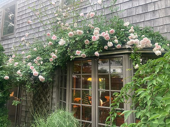 The house within the secret garden hidden right downtown! I bet you have parked in the Town Hall parking lot and walked past the discrete doorway cut into the fence plenty of times. Stepping through the fence and into the garden is magical. The Barn is a restored 19th century carriage house that sits among beautiful landscaping. It is right downtown, behind Winslow's Tavern Restaurant and yet feels secluded and private. Truly the best of both worlds; access to all you could need or want in downtown Wellfleet and yet hidden from sight. Inside the house is also a delight- the open first floor with exposed original beam ceilings and wide board wooden floors welcomes you right in. The kitchen is nicely updated with stainless appliances including a Viking stove, granite countertops and cherry cabinetry. The bedrooms are upstairs on the second and third levels. There are three splits to keep things cool and a Munchkin boiler and two Jotul enamel gas stoves for wintertime. The hot water is on demand and outside you will find the requisite outdoor shower. A brick pathway and patio are out front and a surprisingly large yard out back and beyond the deck.