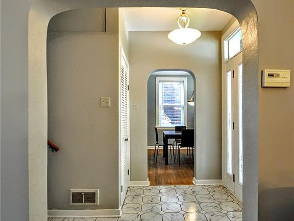 Upon walking to this home there are only a few stairs to gain entry to the beautiful covered front porch where you could have your morning coffees. When entering the home you will be greeted by a large entry way. The main floor has the living room to your left featuring a fireplace as your centerpiece and the dining room, kitchen and breakfast nook to your right. All of the rooms are large, have high ceilings, and hardwood floors throughout the home. Off of the kitchen is a large patio with a newer retaining wall that has a fire pit built in. This will be great for those summer bbq's. The kitchen features a pantry that leads to the basement where you have an additional finished living area, full bathroom with tons of storage space. The second floor has three bedrooms with a full bathroom. The whole house has been freshly painted and has tons of character. Don't forget about the detached garage in the rear of the home for your off street parking or storage needs.