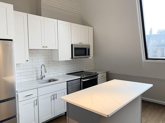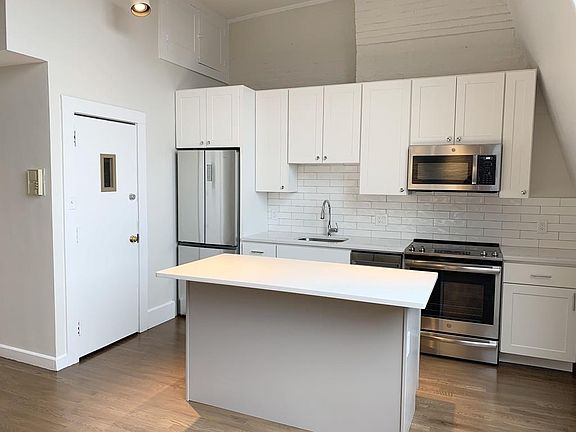 Brand NEW renovation! Bright and sunny two bedroom penthouse on Marlborough St. The living room is the highlight of this gem featuring open kitchen with quartz countertops, stainless steel appliances, and breakfast bar. Large windows with tremendous views, and tons of natural light. Two large, equal size bedrooms with good closet space. Brand new bathroom with large shower and glass seamless doors. New hardwood floors throughout, central A/C, and laundry in building.