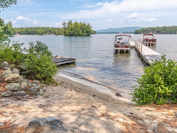 MEREDITH: This 3+ bedrooom, 3 bath home is being sold with a 24' dock slip on Lake Winnipesaukee PLUS the Sellers are willing to sell their Tri-toon boat and trailer allowing for the opportunity to get on the lake as soon as you close! Located just about 10 mins from downtown and a short golf cart ride away from your dock and beach sits this well-kept house with detached barn/workshop on .93+/- acres. As you enter the home from the driveway, this level features a game/rec room, a full bath, office and access to the indoor storage area. Upstairs to the main living area is an open concept kitchen/dining, large living room with hardwood floors and glass doors to a fabulous screen porch that leads out to the large deck. Kitchen boasts silestone counters with island and offering plenty of room to prep and entertain. Just down the hall is the primary bedroom with walk-in closet and a 3/4 bath with laundry. There are three more additional bedrooms and a full bath on the 2nd floor. With over 2500 sf of living space, there is room for everyone! The detached barn offers a large workshop and two additional rooms upstairs. The barn is on its own electrical service making it a great option for an accessory or inlaw apartment. The owners have done many recent updates including a brand-new 200amp electrical service (generator ready), all new windows and new exterior doors.