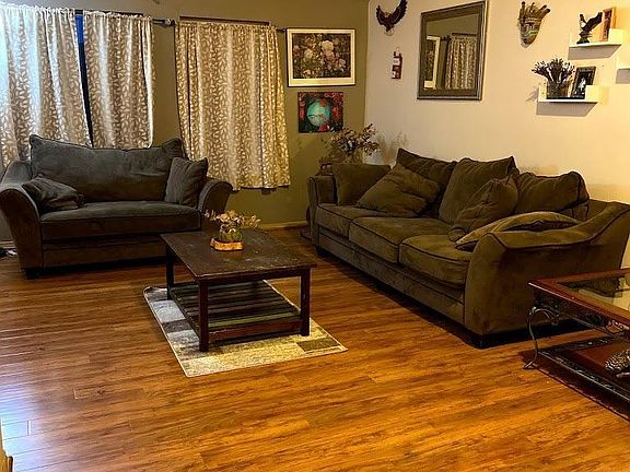Large 1702 Square Foot home on .18 acres of land with an open floor plan; located in the very desirable Hanby Vista Subdivision. The home is 3 bedrooms, 2 baths with a large master bedroom and walk-in closet. Home has been very well cared for and updated with a new stove, refrigerator, front door, new ductless HVAC heating/cooling system, Pergo outlast premium laminate flooring with spill protection installed in the dining and living area; and new stain resistant carpet in hallway and bedrooms. The backdoor patio was upgraded to a large covered deck. The home has vaulted ceilings, a breakfast nook, large dining area, and living room. The backyard is fenced and both front and back yards are properly maintained and landscaped. Property has mountain views all around, is close to town, medical, and schools. Call today for an appointment to view this property!