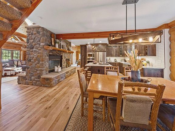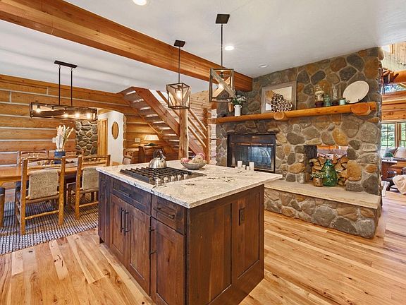 This iconic Frisco home boasts Frank Lloyd Wright-inspired architecture with classic log construction. Feel the compression and release as you enter the stunning living space with vaulted ceilings and a soaring rock fireplace at its heart. The modern, elegant kitchens and baths stand out, along with the mostly single-level layout. Your experience transcends as the home opens to 10 Mile Creek on one of the largest riverfront lots in Frisco. Plus, it’s just a short stroll to Main Street!