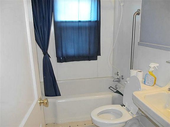Nicely remodeled 2 BR home with cathedral ceiling, walk-in shower, and deck, less than a block from K-12 school. Central heat/air, 1-car detached garage.