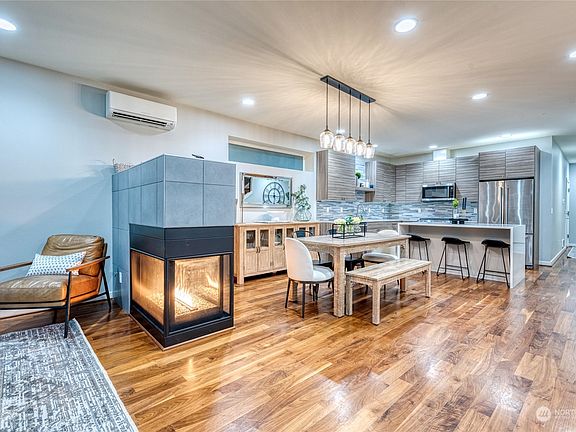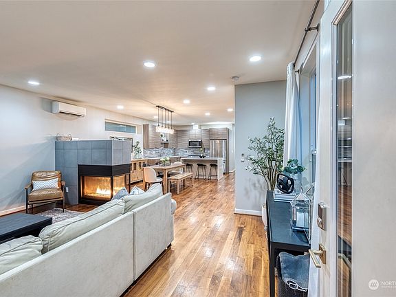 Best of Phinney-this one checks all the boxes! Open floor plan with hardwood floors & three-sided fireplace set the stage for easy living. Upgrades include new island to complement custom cabinets with soft-close, quartz counters, & extra-large panty. Built-in closet systems throughout expand already phenomenal storage! Enjoy private yard with permanent turf and professional hardscape.  Four bedrooms on one floor, including primary suite with dual closets & primary bath with heated floors. Keep it comfortable & light with air conditioning and programmable skylights. One car attached garage with electric car charger and two more off-street parking. You’ll always have somewhere to be with walk-score of 94 and Green Lake 6 blocks away!