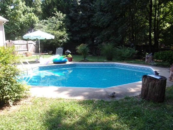 Kitchen to deck overlooking backyard and pool. Outdoor shed storage in backyard. The kitchen has an electric oven/stove, microwave, dishwasher & refrigerator. Also in kitchen is walk in pantry storage and included is a new (9mos old) washer and dryer. Main bedroom is spacious with a full bath. Home is minutes away from shopping at both the Austin Village and McKee Farms Shopping Centers.