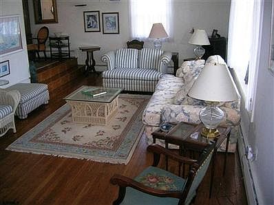 Spacious family home in beautiful year-round neighborhood featuring a large bright living room formal dining room updated eat-in kitchen & family room w/ gas fireplace. Two Master bedrooms & baths!...one on the second floor and a huge Master bedroom & bath on the top floor. Great storage space 3 full baths and a powder room adjacent to the family room. Oversized garage for a car plus bikes surf boards etc. Relax on the open porch overlooking the airy corner. Plus a NEW roof!