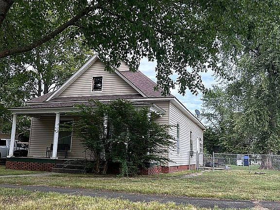 Spacious 2bed/1bath, historic cottage home. ALL ORIGINAL WOODWORK THROUGHOUT HOME (hardwood flooring, authentic craftsmanship trim, doors, and complete with original intact pocket doors between living and dining room. Spacious fenced yard and large sitting porch (concrete pad in place for carport or small shop). Exterior: new roof, vinyl siding; Interior: updated textured and painted walls/rooms, electrical and plumbing updates, and more. SHOWINGS: showing will be by appointment only and must have pre-approved financing. Home is currently occupied by tenant; if buyer purchases for investment; tenant would be willing to consider long-term lease.