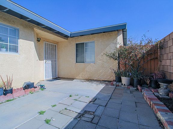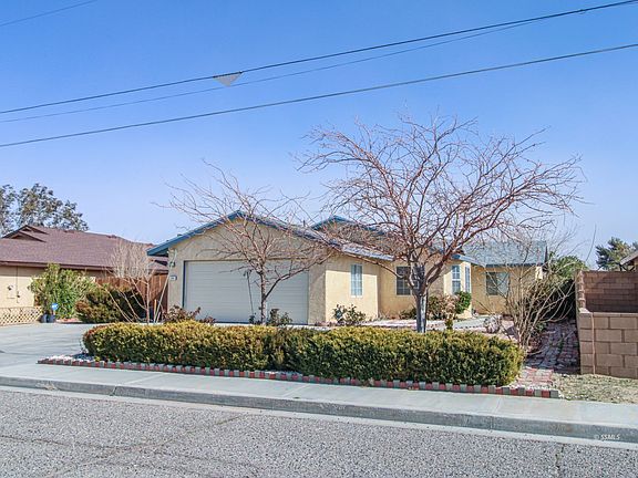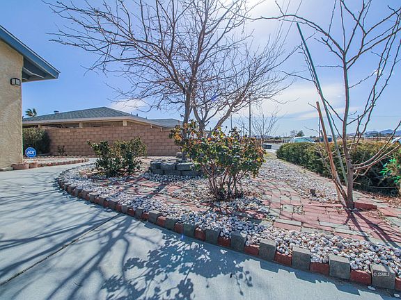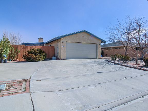 Bright and cheery 3 bed/2 full bath home in Northwest Ridgecrest is in remarkable condition and new owner ready!! The front yard features welcoming Xeriscape with trees and shrubs, plus extra-sized driveway. Side entryway provides privacy and invites one into a large living room area with picturesque red brick fireplace. The kitchen has copious cabinet and wrap-around counter space suitable for all cooking needs! There is a cozy dining/breakfast nook with ample space to allow added bar stool seating at the countertop. Tidy, light laminate and tile flooring throughout the house provides a bright and open ambience. The primary bedroom features a charming archway to the primary bath and a walk-in closet. The two large guest bedrooms complete the sleeping space. The laundry room with overhead wooden cabinetry leads to the naturally-lit and finished garage. The backyard features a covered patio space and a capacious landscaped area, great for family activities and recreation. Perfect home for a family that balances the need for large gatherings with a quiet night at home. Come see!
