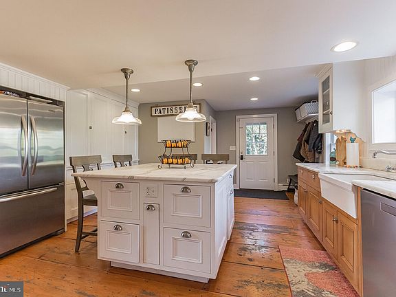 The Moses Baldwin House...Feel the warmth on a cold day as you enter this historic home, ca 1780, originally the local cordwainer's home. It's located just minutes from the center of historic Pennington Borough. Nestled on almost half an acre of ground, this 2-story, 4 bedroom, 2.1 bath colonial home enjoys outlying privacy as well as convenience to the many specialty shops. Historic details include wide pumpkin pine floors, 2 working fireplaces (1 gas, one wood-burning), wood ceiling beams, latch cabinet hardware and built-in cabinetry. Start the day in the bright, updated eat-in kitchen, around the large island, the center of kitchen activity. The kitchen features upscale stainless-steel appliances (Italian Bertazonni stove, Asko dishwasher, Kitchen Aid refrigerator) marble countertops and backsplash, painted contrasting cabinetry and a white porcelain farm sink. Warm yourself by either of the 1st floor fireplaces, located in the spacious family room and the office. The dining room makes a perfect back drop for entertaining and special dinners. Four bedrooms, 2 full baths, laundry and a study or TV room occupy the second floor. The full sized, floored attic is easily accessible by stairs and provides plenty of storage space. Among newer improvements are a seamed metal roof, vinyl siding, windows in several locations and conversion from oil to gas fuel. This is a perfect main or weekend home. It's a great respite after a day of work whether work involves commuting to New York, Philadelphia or Princeton or is based at home. Parks, hiking trails, cultural venues, river recreation, horseback riding, upscale restaurants, vineyards, Hamilton Sculpture Gardens and Princeton University are just some of the nearby interests. 2021-04-09