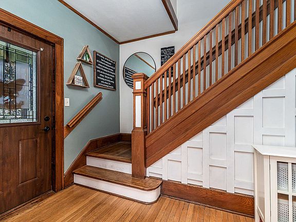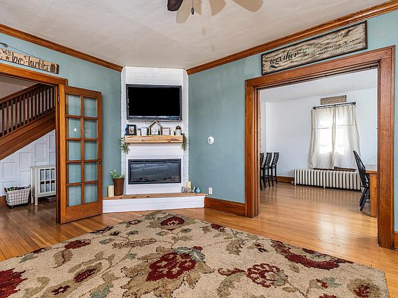 Welcome to this beautiful 3-bedroom, 1-bathroom, two-story home nestled in a tranquil small town, perfectly situated on a block between the baseball field and the town park. This lovely residence boasts a blend of historic charm and modern updates, featuring original pocket and French doors that add a touch of elegance and character. Step inside to discover a remodeled kitchen and dining room, designed for both style and functionality. The back porch was expanded and converted to a convenient laundry room. Outside, you'll find a fenced-in backyard, ideal for pets and outdoor activities. Enjoy warm summer days on the back deck or relax on the inviting covered front porch, perfect for morning coffee or evening sunsets. Don't miss the opportunity to make this enchanting property your own!
