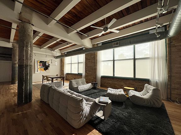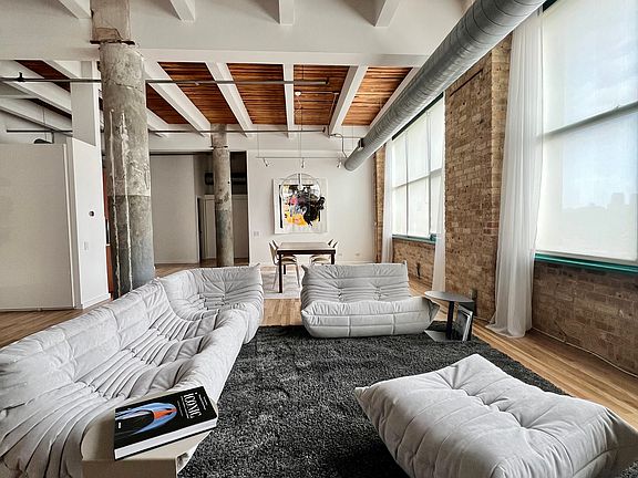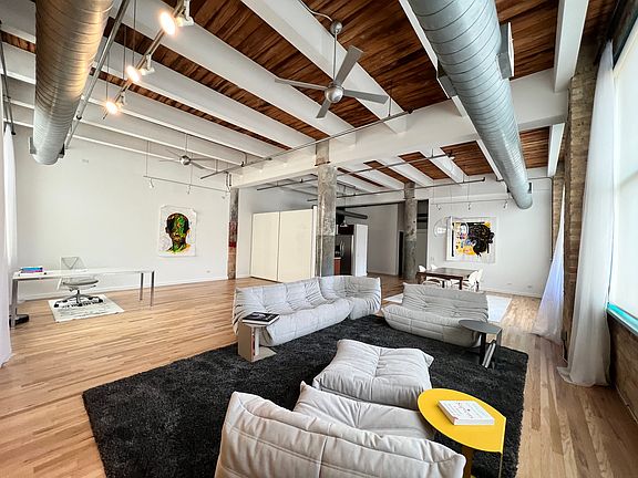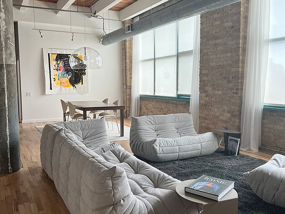 Beautiful and sunny corner loft unit located in the heart of Fulton Market, one of the best true loft buildings in the West Loop - Chicago's hottest neighborhood! This impressive 1800 sq. ft 1BD/2BA live/work unit offers East/South exposure and a gorgeous city view of the Hancock building. It also has the possibility to add a second bedroom. The unit has new hardwood floors, freshly painted walls, 14 ft ceilings, concrete columns, exposed brick walls, and huge windows in each room. The modern kitchen is equipped with SS appliances, granite countertops, and a Jado faucet. The modern baths feature marble, travertine, and Grohe/Kohler fixtures. There is a walk-in closet and plenty of storage. Additionally, there is central air and an in-unit washer/dryer. The building has a common rooftop deck with BBQ grills and spectacular views of the Chicago Skyline. It's located 2 blocks from the new Google headquarters and 3 blocks from the Morgan CTA station. It's just minutes to downtown, CTA, Metra, and Interstate 90-94. tenant responsible for gas, electric and cable/internet.