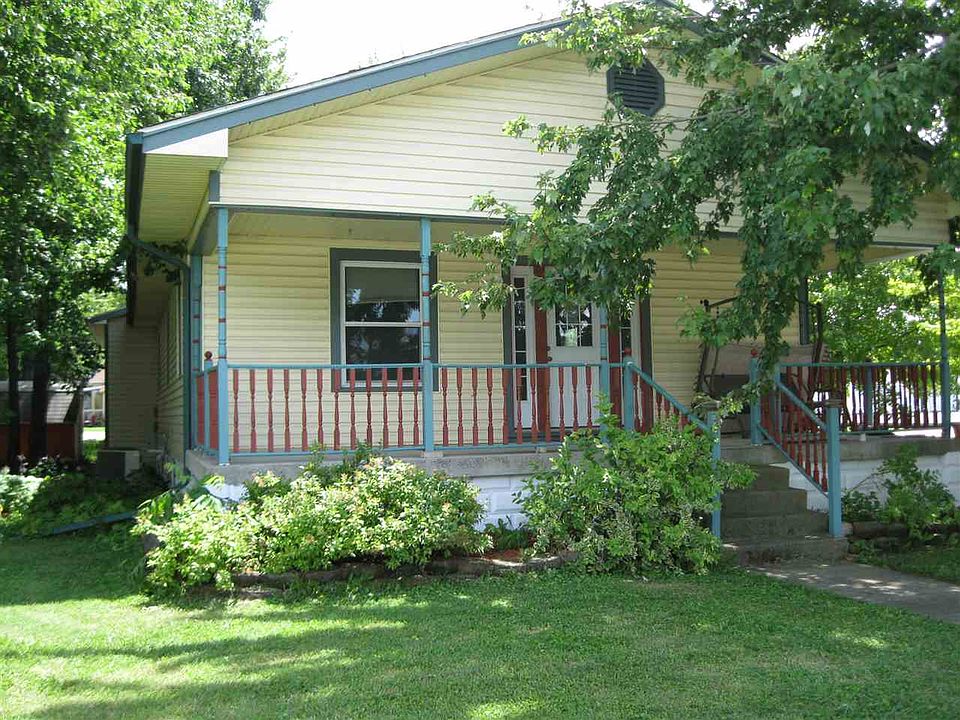 Nice bungalow in small town in Western Schools. Recent kitchen and bath updates. Large, open front porch, built-in cabinets in dining room. Appliances remain in kitchen. Full basement, and large attached garage.