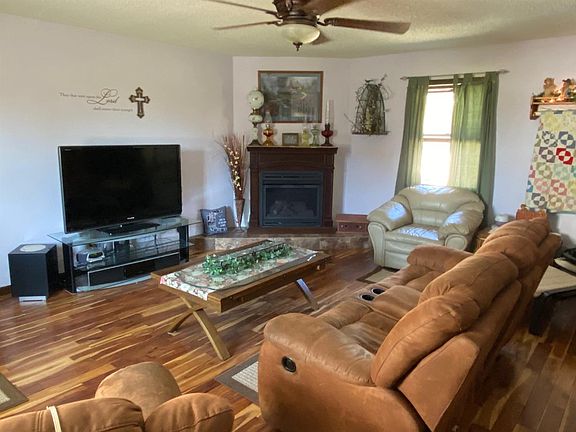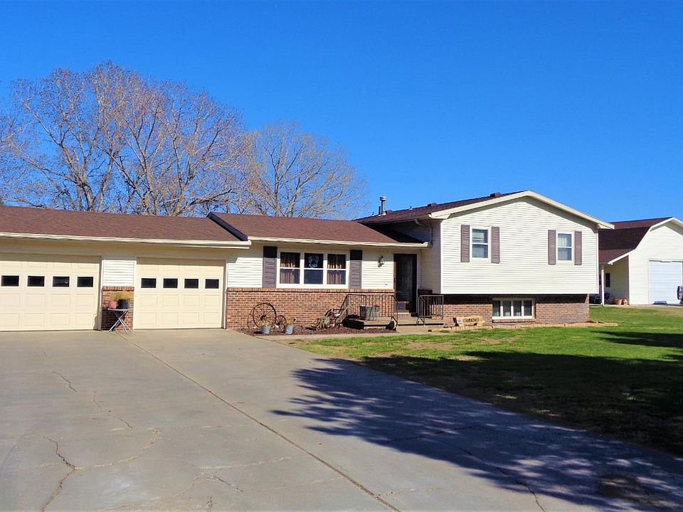 Lots of country charm with blacktop frontage close to town. This 4-level home features 5 bedrooms, 4 baths, with a deck made from composite material. Newer hardwood floors and carpet in 3 bedrooms. Updated bathrooms. Lots of closet space through out home. Double attached garage with a 25' x 40' detached garage, all sitting on 2.5 acres. There are 2 master bedrooms and bathrooms.