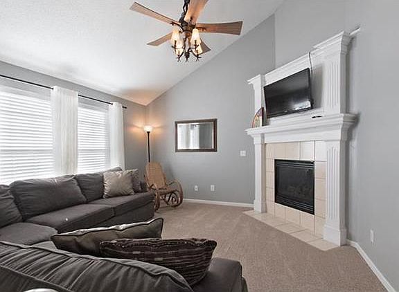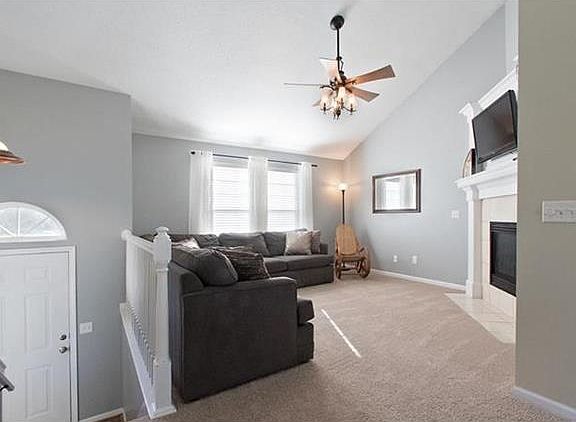 Stunning split entry with plenty of natural light! Walk-in to the spacious living room with vaulted ceilings and gas fireplace. Kitchen features hardwood floors, tile backsplash, and pantry. All bathrooms have tile floors. Master bedroom/bath feature walk-in closet and custom cabinets. Finished walkout basement has new flooring in family room and a half bathroom. All new carpet throughout. Backyard is fenced and backs to wooded area with no neighbor on east side. Double deck for relaxing outside. Top deck is new.