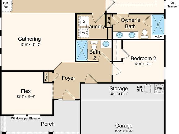 Built specifically for 55+ age restricted communities. Summer Completion! The Bali features an inviting foyer welcomes you inside the home, two secondary bedrooms, and full bathroom. An open-concept gathering room and kitchen invite you towards the rear of the home, along with a casual dining area off the kitchen. Decompress after a long day in an owner's suite that includes a generous walk-in closet and a spa-inspired owner's bath that features dual sinks and a walk-in shower with ledge. A laundry room and additional storage space in the two-car garage complete this plan. Structural options added at 312 Northgate Boulevard include: tray ceiling at owner's, metal roof, bedroom 3, tub at bath 2, valet, rear extended covered outdoor living, additional windows at owner's, tankless water heater, kitchen island, microwave vented to outside.