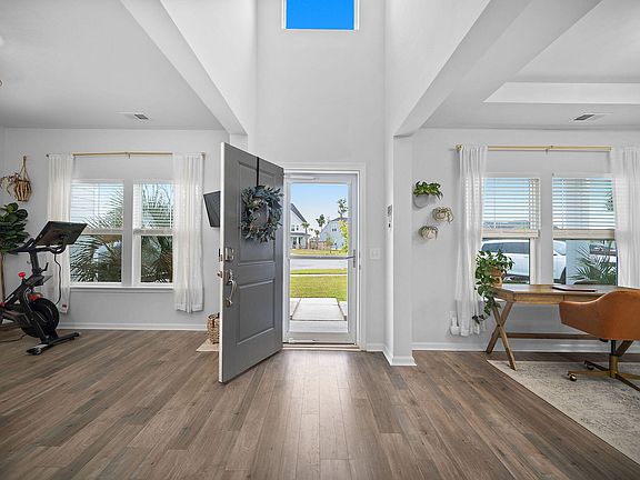 **Seller offering 2:1 rate buy down with interest rate 2% below market rate to start, with use of preferred lender and acceptable offer** WELCOME HOME! This is your rare opportunity to own one of Waterside's premium properties. This home sits on an oversized cul-de-sac lot with a backyard overlooking the Lake of Cane Bay. This Virginian floor plan boasts 5 bedrooms and 3.5 bathrooms with upgrades throughout. Be prepared to be wowed as you view your 2-story foyer with custom light fixture. On your left and right reside dual flex spaces to be used as a dining, office, study, play room, and more. This open concept first floor combines a chef's kitchen with cathedral living room, natural light, and views of the lake backyard. The kitchen boasts quartz countertops, upgraded lighting, subwaytile backsplash, and stainless steel appliances. The laminate floors leads you into the first floor Owner's Suite where a tray ceiling and ensuite with dual vanities, garden tub, and tile surround shower reside. The open picket stairway overlooks the living areas and is upgraded with laminate flooring. Four large bedrooms and two full guest bathrooms offer an amazing layout for families and guests. Relax on your oversized back screen porch and watch a lowcountry sunset over the 325 acre lake. Take a paddle board ride or hop on a golf cart to explore miles of wooded walking and jogging trails. Waterside also offers a resort style pool and brand new C-17 play park. Cane Bay YMCA, Publix, shopping, dining, gas station, highly rated schools and more, make for a true master planned community. Don't miss out on what lifestyle awaits you with this wonderful home in Cane Bay Plantation.