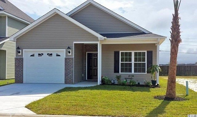 This is a Molly plan under contract with an expected completion date in December 2016. The photo is of a Molly plan at another location. Palm Cove is an exciting new home community on Palmetto Point Boulevard, just across Hwy 17 Bypass from the Withers Preserve and Market Common area. This great location gives you quick access to the beach; Market Common; Crabtree gym and recreation areas, walking areas, and ball fields; Coastal Grand Mall, and just about any location on the beach, since you have stoplight access to Hwy 17 Bypass. Unbelievable low prices for such a great location, and take a look at all of these STANDARD features included in the price: 9-foot ceilings, brick accents plus low-maintenance vinyl siding, tile flooring in kitchen and baths, granite kitchen counter tops, upgraded cabinets with slam-proof and self-close feature, garage door openers, ceiling fans with light package in all bedrooms and living room, custom trim package including full wood trim (instead of just a sheetrock return) on all windows, sprinkler system included with fully landscaped yard. WOW!! Good-looking and functional, and lots of extras for no extra charge!