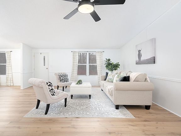 Don't miss out on this beautifully renovated doublewide sitting on more than 7 secluded acres yet still close to city amenities! Luxury vinyl plank flooring spans the entire space, complemented by fresh paint and modern fixtures. The open concept design provides ample room for relaxation and entertainment. The three spacious bedrooms offer a perfect retreat, and the updated bathrooms reflect a clean and modern aesthetic. As you explore the exterior, you'll find a large front porch, ideal for enjoying the serene surroundings. Practical features include a convenient carport, two storage sheds, and a gravel driveway. Situated on over 7 acres, this residence opens a world of possibilities. The expansive acreage allows you to tailor the property to your desires. Don't miss the chance to make this wonderful home yours - schedule a viewing today and experience the perfect blend of comfort, style, and natural beauty!