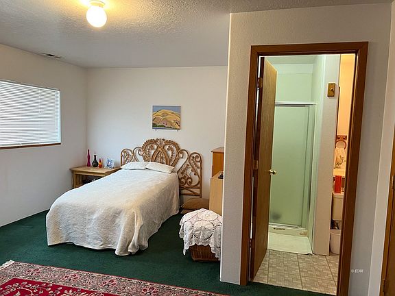 Uniquely designed home is partially in the ground, which helps keep it cool in the summer and insulated in the winter; it's built on a gentle slope by the golf course, close to schools, shopping, and restaurants. This two-bed, two-bath home has large windows that let in plenty of sunlight. The main bedroom has a walk-in closet and its own bathroom. The second bedroom has an attached bathroom. In the kitchen, the laundry has a newer washer and dryer that stays with the home. There is a shed that has a shower, sink, and toilet... Man-cave... She shed??? So much potential. Oversized two-car garage. Views of the golf course and mountains.