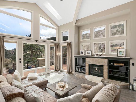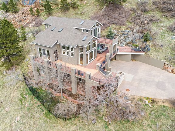 Welcome home to this Boulder beauty and interior sanctuary. The rejuvenated main floor offers sunlit living and flow between the living room, dining room, and kitchen, with glass doors opening onto an expansive deck. Enjoy newer wood flooring, a stunning stone wall staircase, elegant chandeliers, chef's kitchen w/ slab granite, SS appliances, custom Plato cabinets, raised breakfast bar w/ pendant lighting. Views of the Flatirons and hills can be seen through floor to ceiling windows, throughout. Master suite commands the upper floor and is brilliantly designed to include a modern, freestanding soaking tub, marble double vanity, spa-like shower, walk-in closet, and private balcony. A main flr bdrm doubles as a home office, while 2 bdrms and a bath occupy the next level. Ex Rm, family room and bath at the Walk-out Level. Attached 2-car garage. Nestled on two acres, this quiet, private location allows for the best of both worlds, as downtown Boulder is less than a 10-minute drive away.