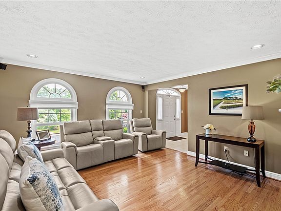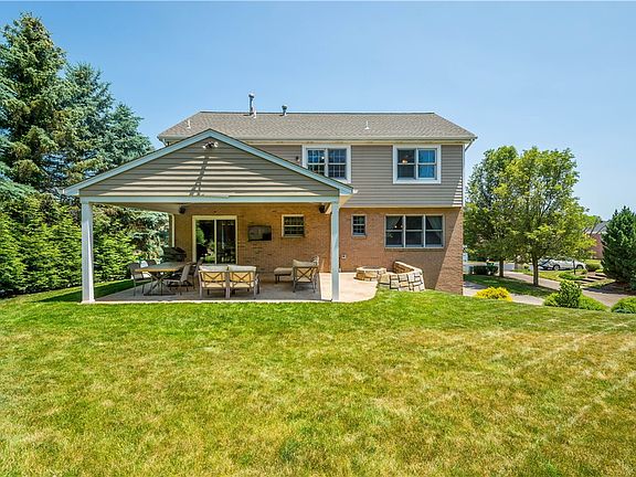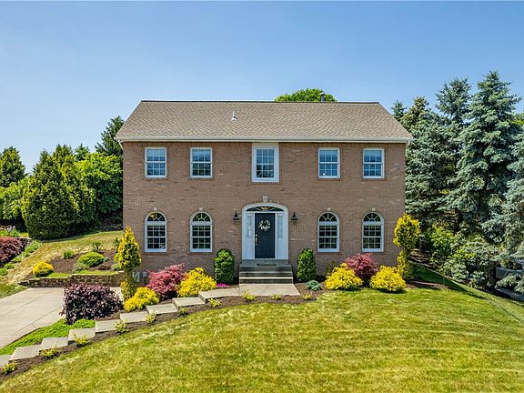 Custom built all brick home located in prestigious South Fayette neighborhood perfect for golfers & convenient to the interstate, shopping, & restaurants. Don't miss your opportunity to own this 4 bedroom, 4 bathroom home that's been well cared for w/ too many updates to list. Upon entering the home the main level has living & family room w/ gleaming hardwood floors, double sided gas fireplace & main level laundry. Updated eat-in kitchen is fully equipped w/ granite counter tops, stainless steel appliances, & peninsula w/ additional seating. Elegant formal dining room is flooded w/ natural light & will accommodate all your guests. Covered rear patio is stunning w/ vaulted ceilings, stamped concrete & custom fire pit. Master bedroom is an oasis w/ walk-in closet & full bathroom decorated w/ marble topped vanity, jet soaking tub, & shower. Lower level is a must see w/ wet bar, beer fridge, quartz counters, & surround sound. New: Roof, Furnace, A/C, Carpets, & more!