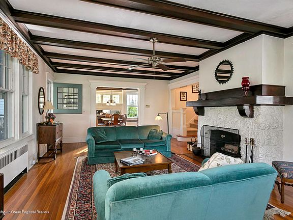 An estate-like home on an oversized 95' X 185'foot lot. The must-have, spacious, ''Spring Lake'' front porch welcomes you to this grand 100+ year old home. Solidly built with construction details from another era. Stained-glass windows, hardwood floors & 9+ft high beamed ceilings compliment the original dining room, living room & sun room. A large dining room features an original built in buffet & a wall of windows with a window seat. The wide living room is anchored by a wood burning fireplace. An open newer kitchen & family room fulfill a modern family's checklist. Exterior features a circular front walk, 2 car garage & generous parking. Landscaped for privacy, blocks to Spring Lake's beautiful beaches and downtown. Imagine the possibilities in this 3 floor, 6-bedroom, 3.5 bath home.