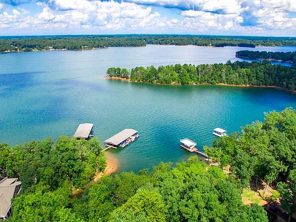 Lake Location at it's best, this charming home is located in a prestigious, quiet neighborhood of almost all lakefront homes. Lake views from all three stories in all seasons. Giving the appearance of a cottage from the front, it will surprise you like no other home with the amount of space it truly holds. The wide deck starts at the driveway and circles around the full back of the home. Stairs from the deck lead down to the paved cart path for the lake. The covered dock can hold up to a 20' boat. Upon entering the main floor, you will find the Dining room, Kitchen, open ceiling Great room, the Master En-suite with bathroom having dual vanities, garden tub and separate shower. The laundry is conveniently located on the main floor next to the 2 car garage which has an extra added storage area for all of your lake toys or even a jet ski. The top floor includes a loft over looking the great room, a bedroom and a large full bath. The fully finished walkout basement includes 2 more bedrooms with a full bath in between. There is a separate large room that could be used for a media room, play room, or even office, and another large entertaining space that opens to the walk out patio. Brand new roof, new lover level HVAC unit, All Stainless Steel Appliances 6 years old will remain. Maytag Washer and Dryer will remain.This owner/agent home has been inspected and repairs completed.(See Supplements for Inspection Report) Seller owns adjacent lot (Lot #1) which was purchased for privacy and is an option to purchase additionally.