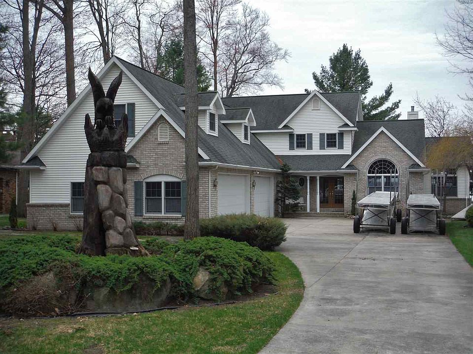 Venture into this prestigious neighborhood where this incredible home awaits you. Tucked away on a tree lined street and situated on 80 ft. of lake frontage, this beautifully designed home captures the attention of all who drive by. Built to accommodate large families or large groups, you will certainly feel the desire to explore every sq. ft. The master suite offers a beautiful view of the water, providing a large master bath and spacious walk in closet for ample storage. The kitchen and living room are designed with an open floor plan to provide adequate room for entertaining. Relax and unwind at the end of the day in front of the large stone fireplace, or outside while the sunset reflects over the calm waters of Houghton Lake. Kitchen offers a bar area for casual dining or formal dining area for those special family dinners. Relax in your private study off of the living room, which also has a beautiful view of the lake as well. This 5 bedroom/3 bathroom home provides a warm and welcoming feeling the moment you step into the door. Home has been professionally landscaped, offers a 4 car garage and is energy efficient with it's 2 x 6 construction, Andersen windows and partially bricked exterior. This dream home can be yours! Schedule your tour today!