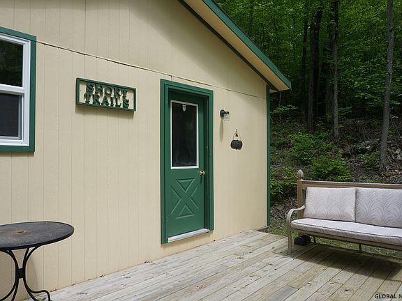 This 3 season camp is nestled on a 5+ acre mostly wooded lot. Located on a dead end lane, this home away from home offers quiet privacy with lots of amenities. Enjoy watching the deer from the large deck and wandering through the trails. The nicely finished interior has a kitchen, living/dining area, one bedroom and full bath. A very special get a way. Most furnishings stay.