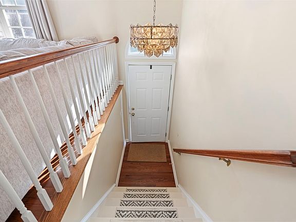 Beautiful 3BR/2.5 bath town home w private backyard in the heart of Adams Township! Upon entry you will walk up to the spacious, light and bright family room that features fresh paint throughout, an elegant gas fireplace, dentil molding, & new hardwood flooring. Heading through the living room is the spacious kitchen & dining area. White cabinets, upgraded lighting, center island, granite counters, tile backsplash, pantry, & stainless steel appliances highlight this laid-out kitchen. The dining area is large enough for a full sized table, allows plenty of natural light through the ample windows and french doors that lead to the oversized deck. The 2nd floor features a large master bedroom w/ vaulted ceilings & ensuite bath w/ double bowl vanity & shower/tub combo w/ tile surround. The remaining two bedrooms share the hall bath. The cozy finished basement features new carpeting, dentil molding, and double french doors leading to the private patio & fenced in back yard.